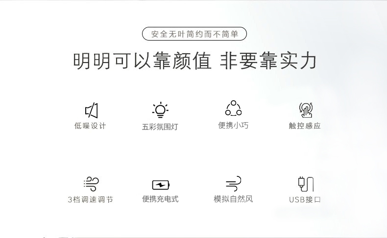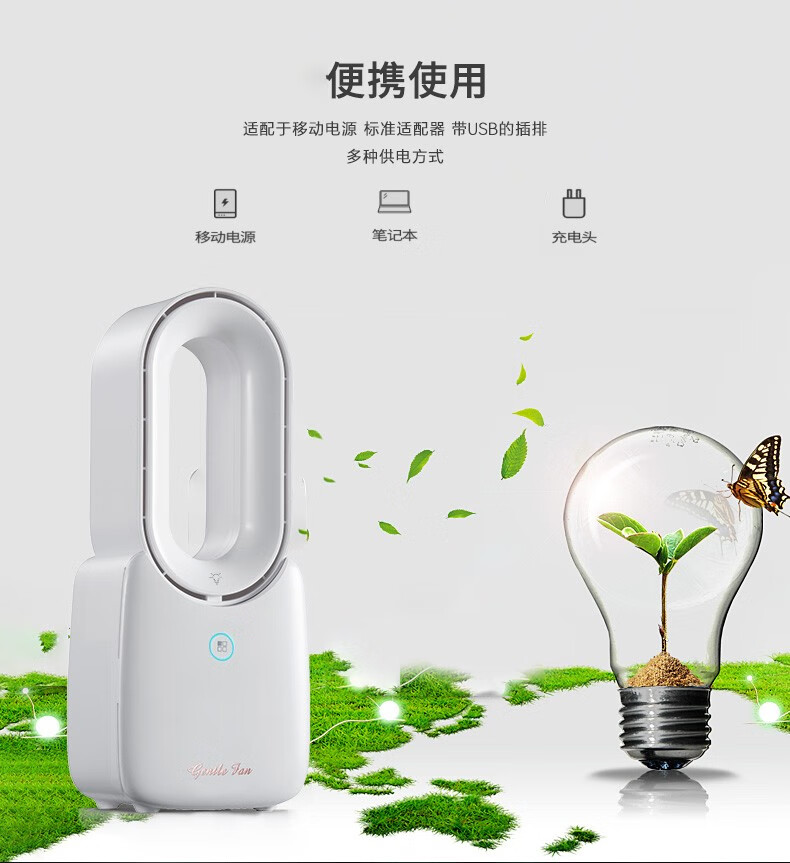 无叶风扇桌面迷你小型风扇USB充电便携式大风力低噪